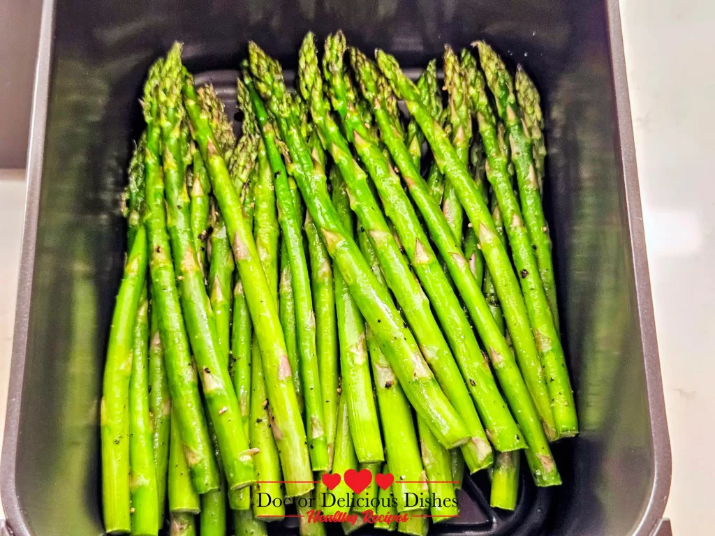 Should I peel asparagus before air frying? No need! Just trim the woody ends. If your stalks are especially thick, a quick peel near the base can help with texture.