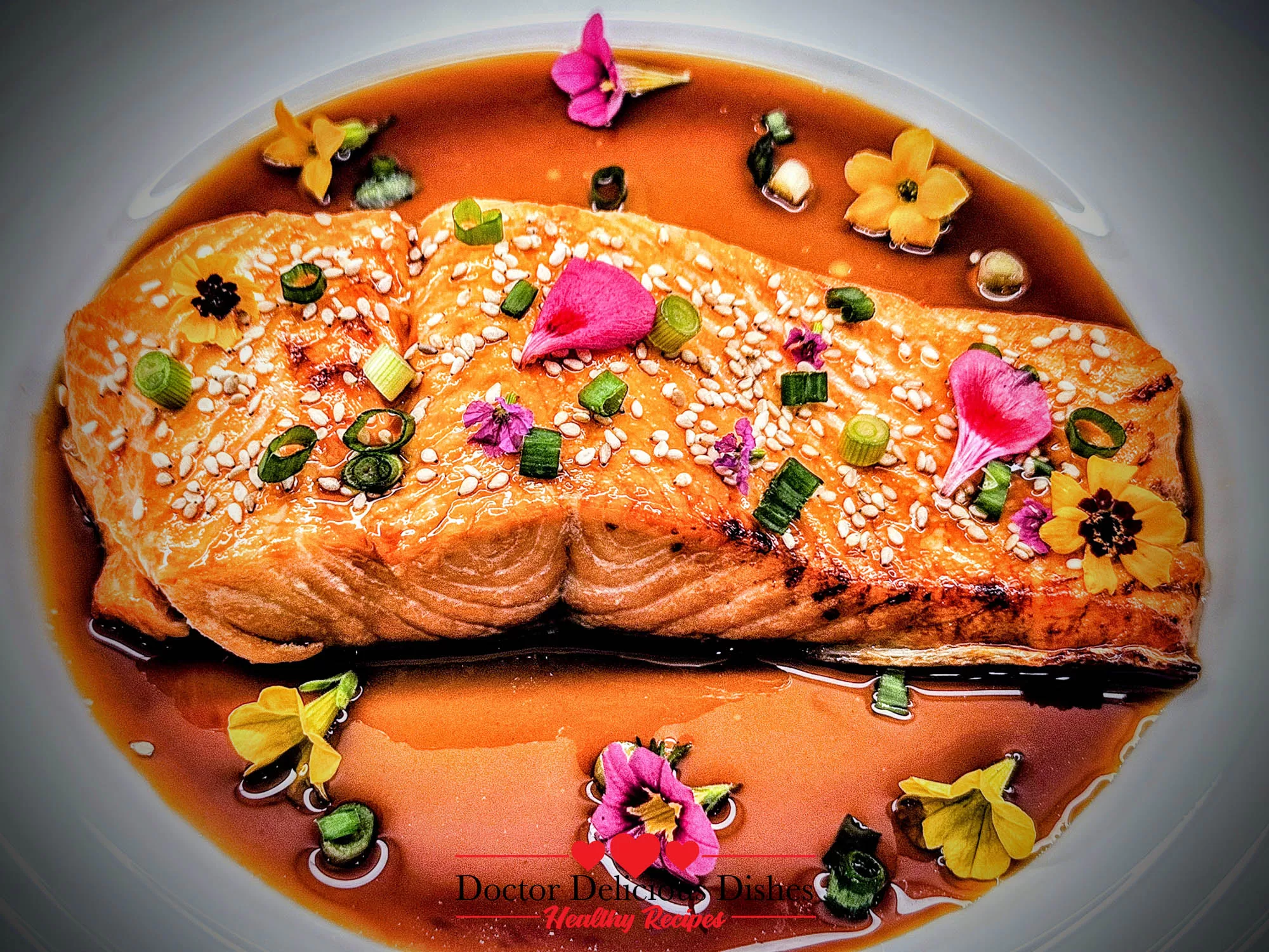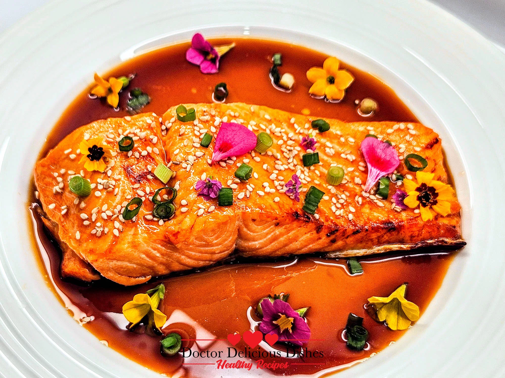 A high-protein, heart-healthy 15-minute recipe for teriyaki salmon, approved by a doctor and perfect for a quick, delicious weeknight meal. This recipe is made with homemade teriyaki glaze for the perfect balance of crispy skin and tender, flaky salmon, using minimal ingredients.