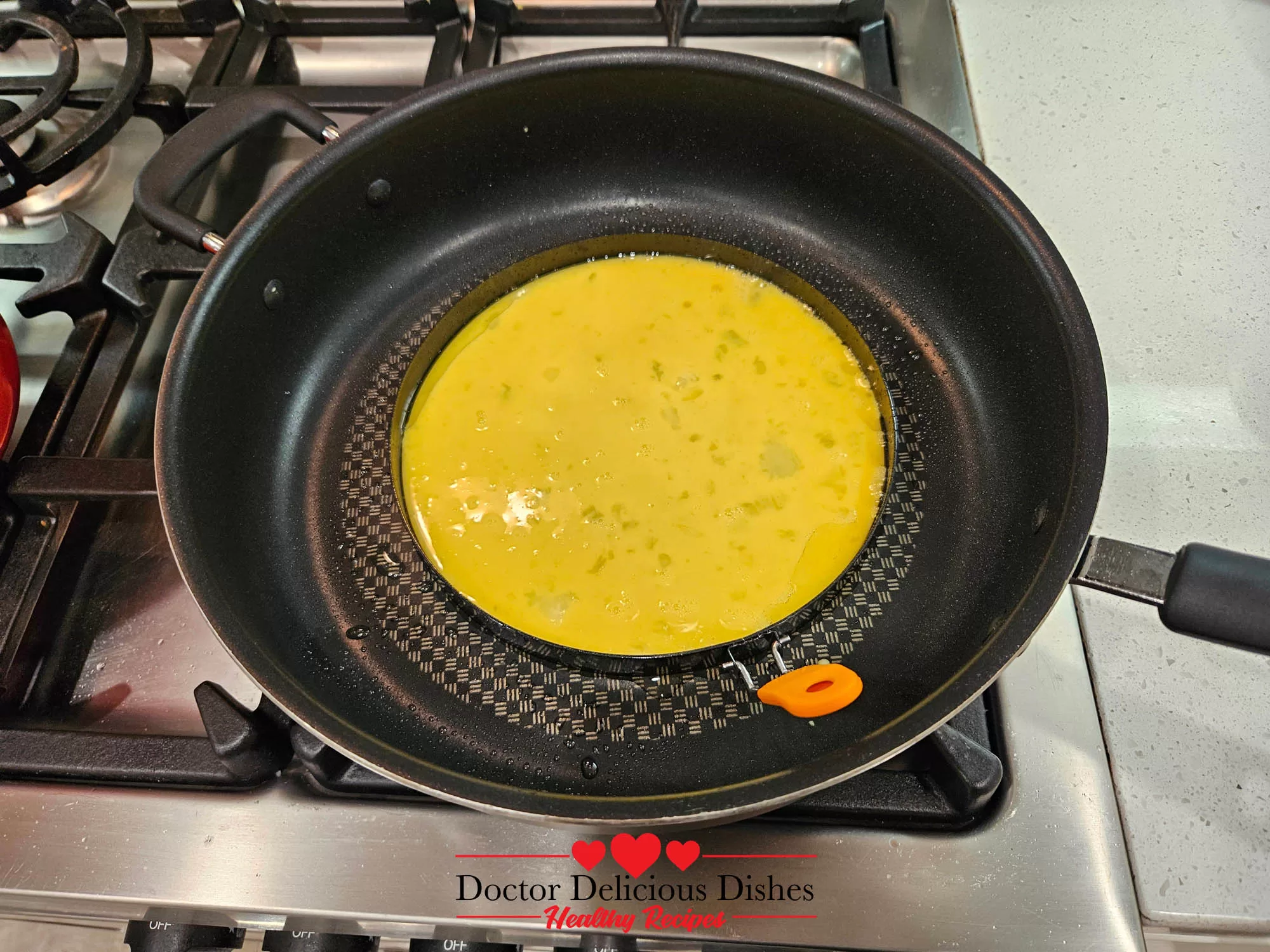 - Pour the beaten eggs into the omelet ring (or directly into the pan).