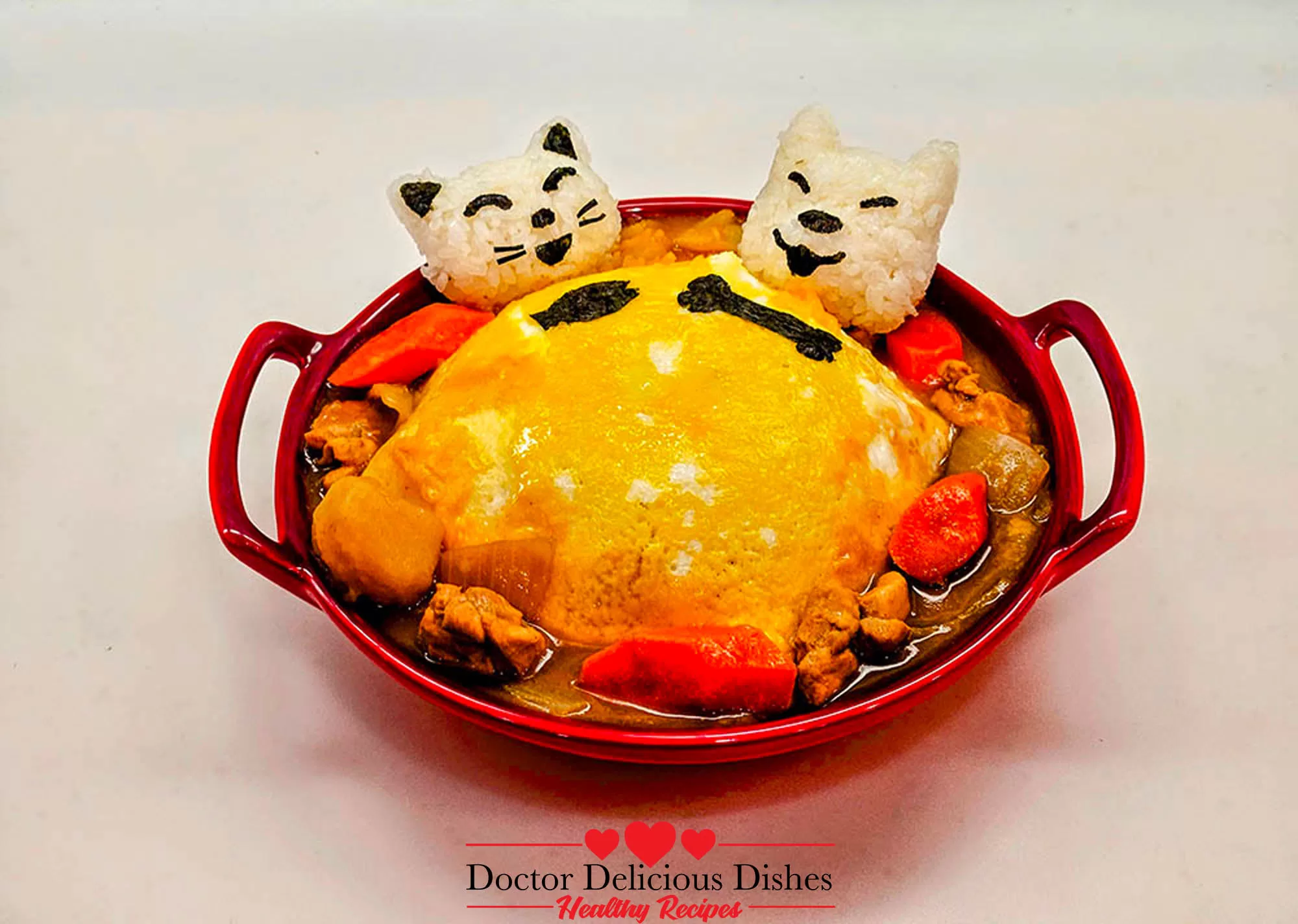 Spoon a generous portion of steamed jasmine rice into a serving bowl. Ladle the curry mixture over the rice, then top with a fluffy omelet. Garnish with nori cutouts or herbs for a finishing touch.