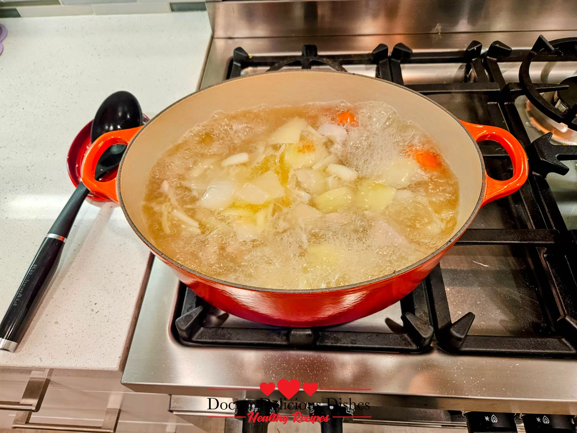 4. Combine and Simmer: 🍲 Transfer the cooked chicken and onions to the pot with your tender vegetables. Pour in enough fresh water to cover all the ingredients, then bring the mixture to a gentle simmer. This is where the magic starts to happen as the flavors begin to meld. ✨